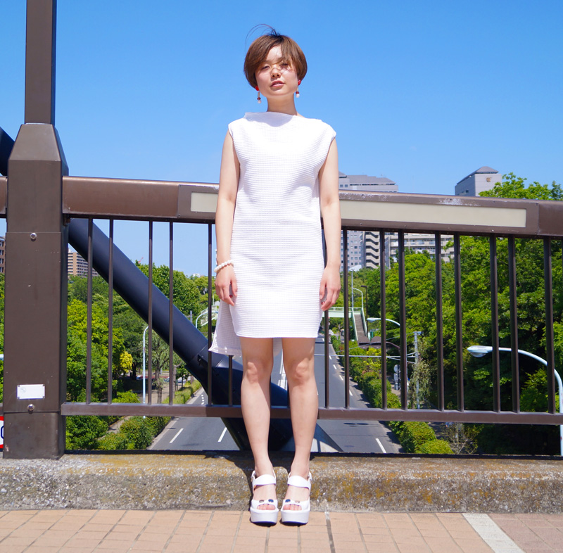まずは「誰でも切って縫うだけでできる服」ということを一番に、裁断するのは「長方形&90度の扇形だけ」になるようにパターンを作ってもらいました。